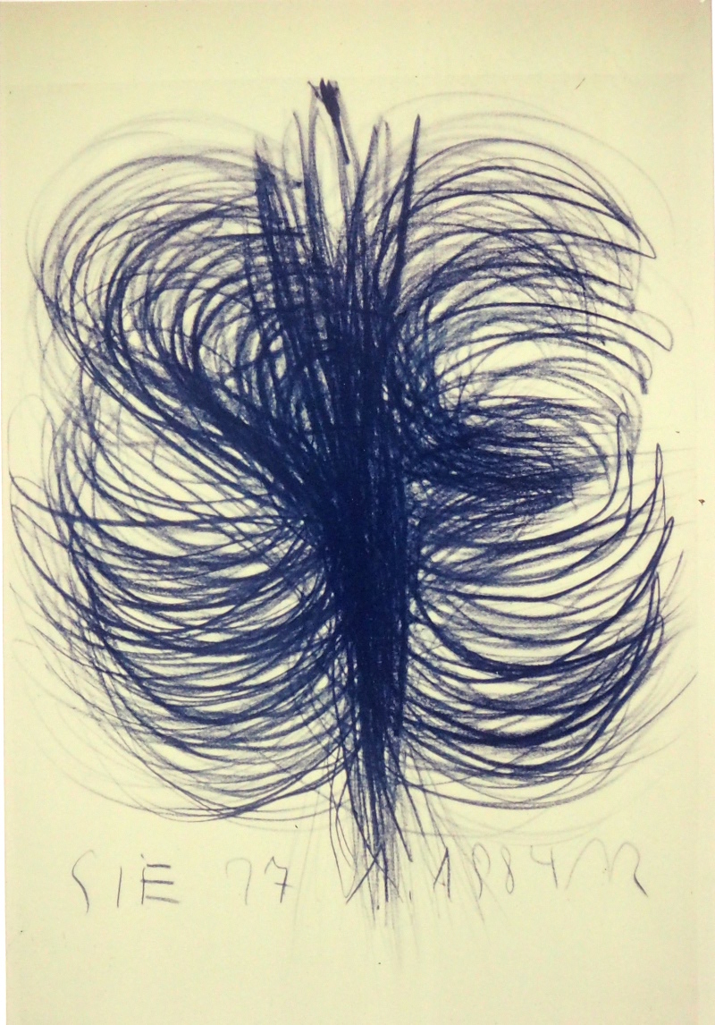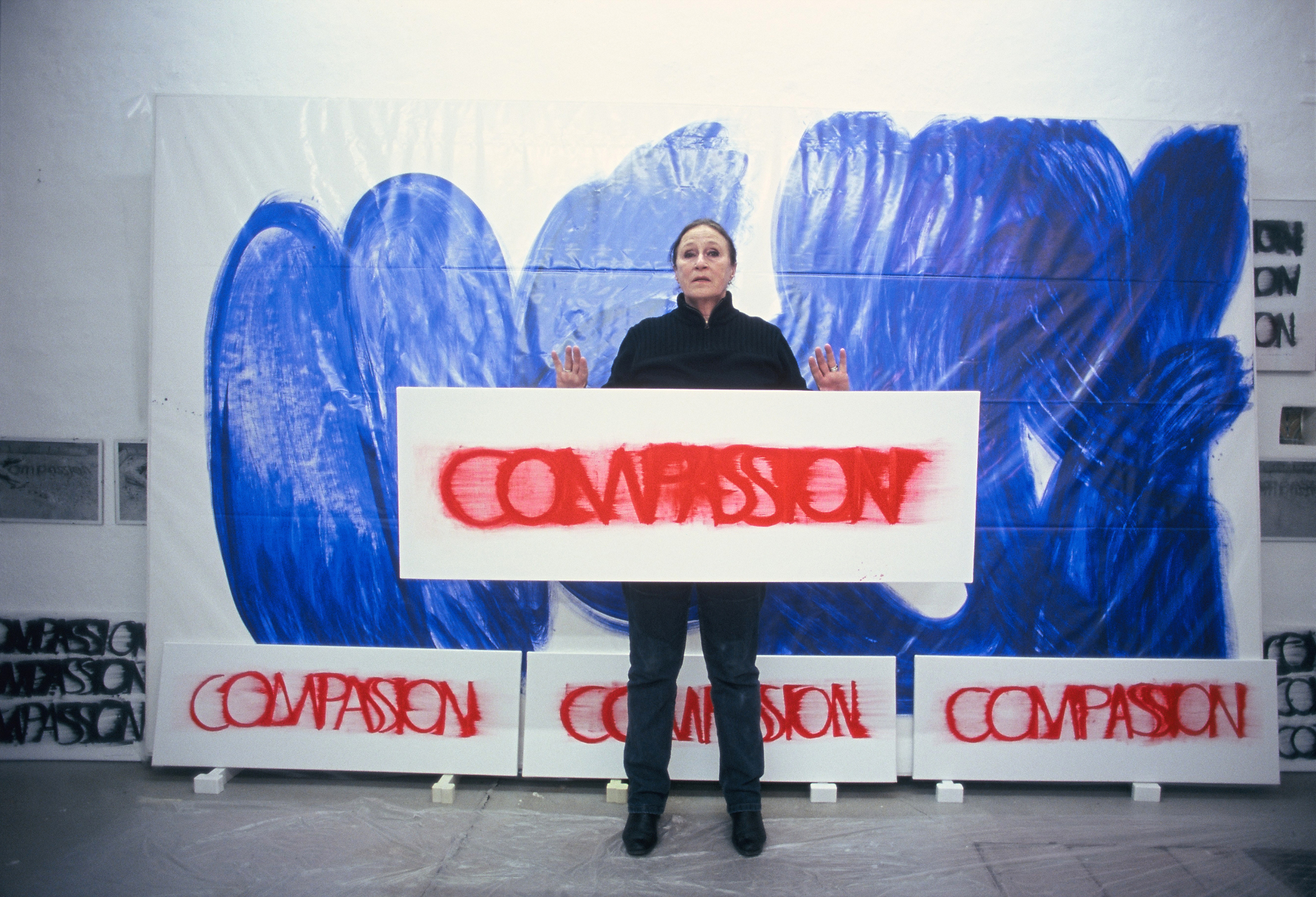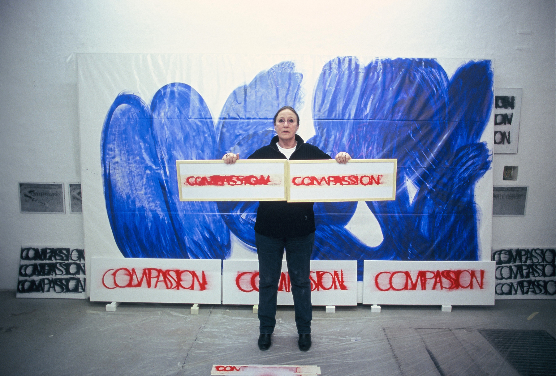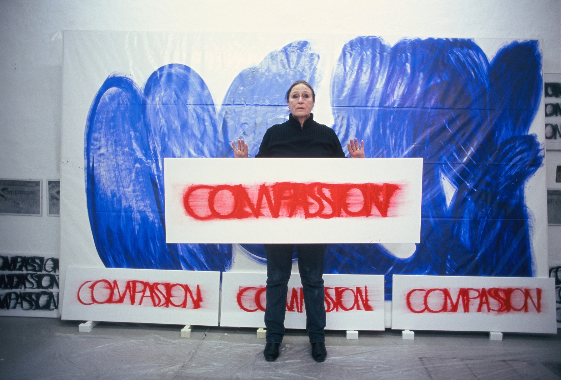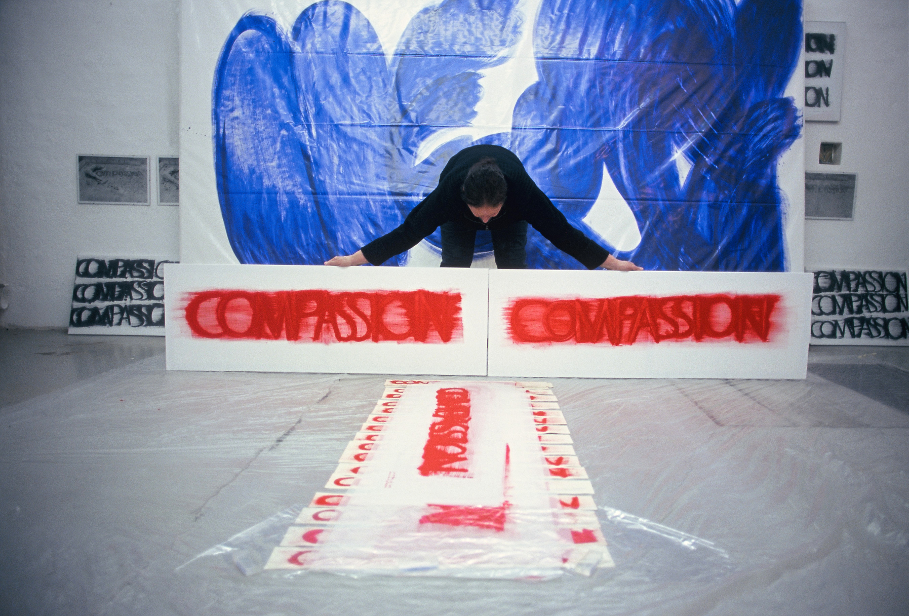 DIE BLAUE ZEIT FÜR ECCE HOMO BEGANN MIT 56 EXERZITIEN auf Karton(70cm x 100cm) +führte 1987 zum großen Tafelbild : MENSCH IN BLAU,1987 - 225cm x 357cm, das anlässlich der documenta in Kassel gezeigt wurde. Annalies Klophaus