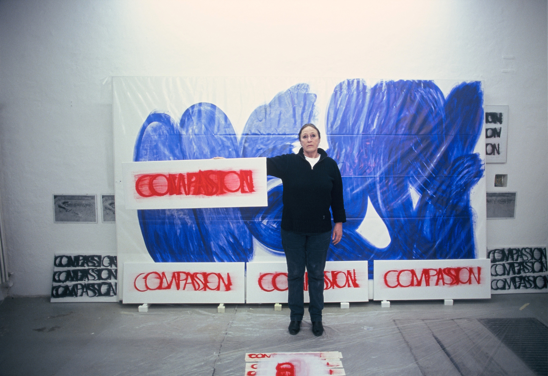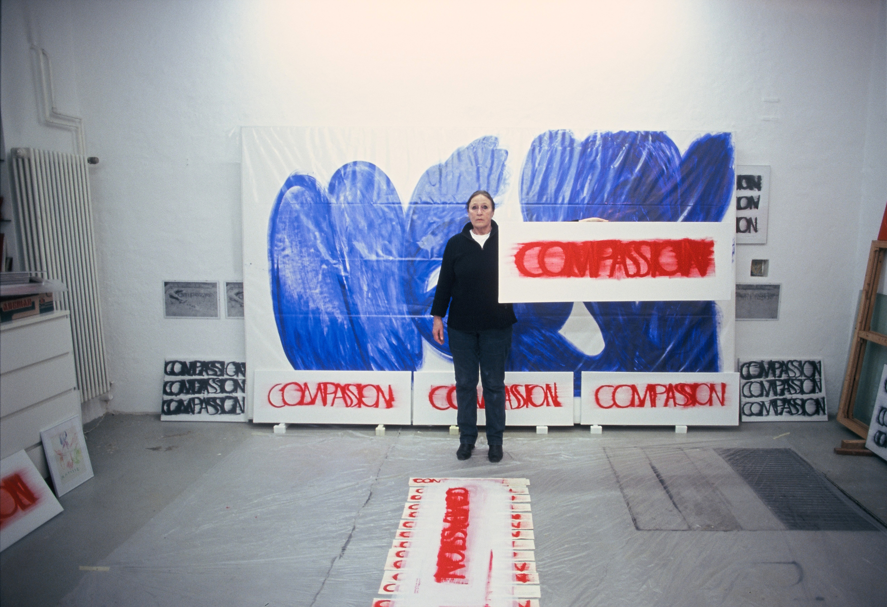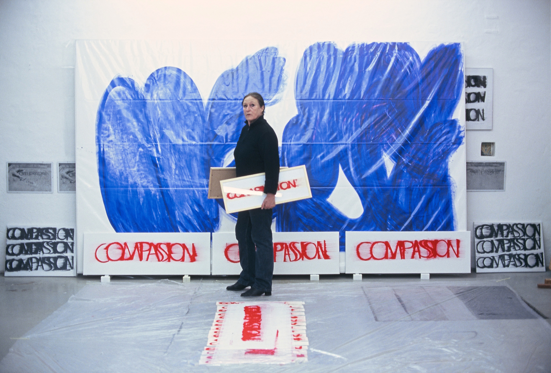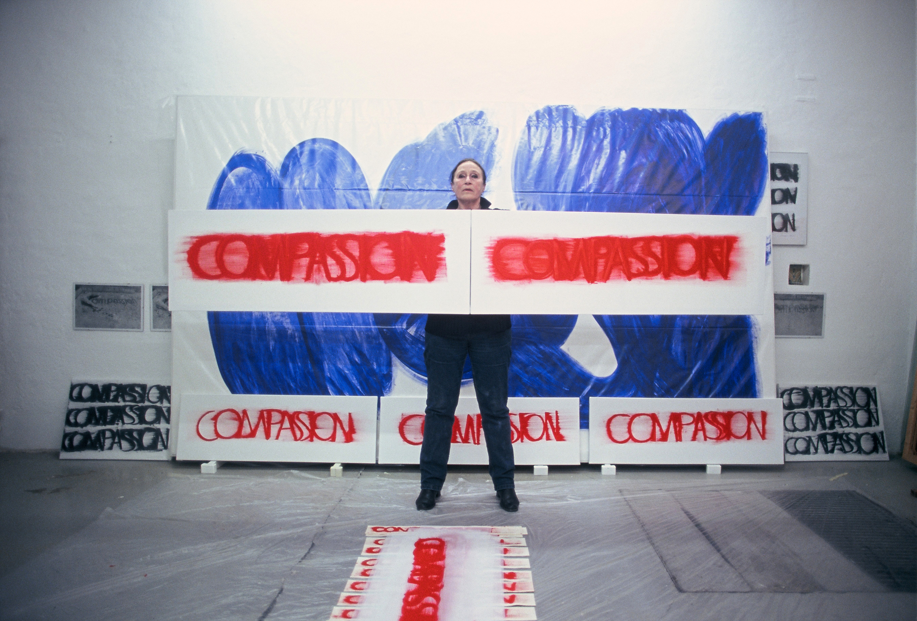 DIE BLAUE ZEIT FÜR ECCE HOMO BEGANN MIT 56 EXERZITIEN auf Karton(70cm x 100cm) +führte 1987 zum großen Tafelbild : MENSCH IN BLAU,1987 - 225cm x 357cm, das anlässlich der documenta in Kassel gezeigt wurde. Annalies Klophaus