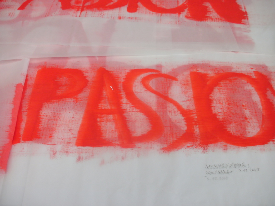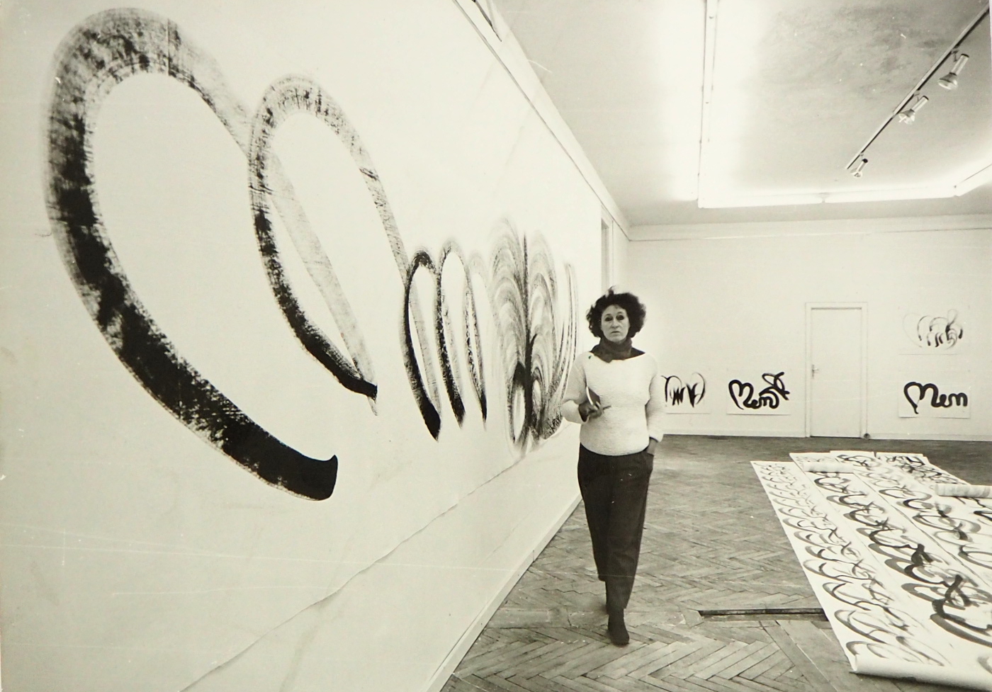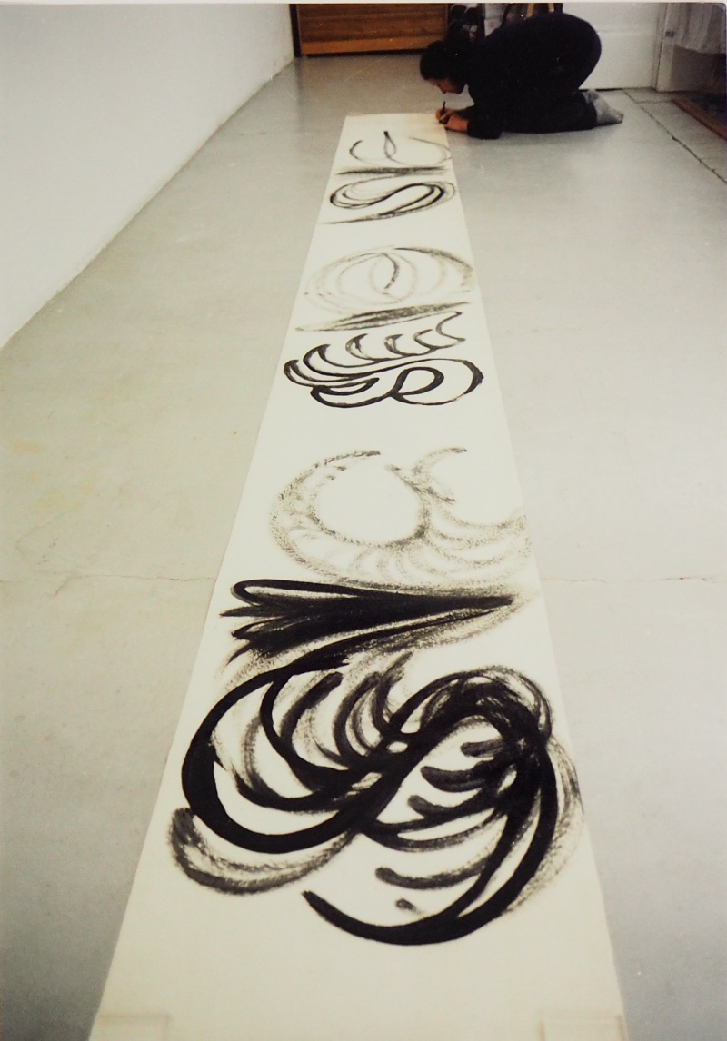 Nach der ENDZEIT VISION :MENSCH IN SCHWARZ auf ca 110 SCHRIFTROllEN, WORT-MALEREI als ROLLBILDER(7,50m+länger )