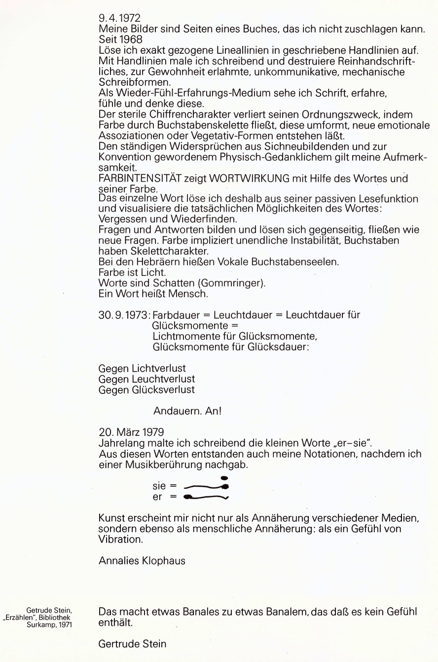 "ANNALIES KLOPHAUS "Standpunkte 1974 - 1985" Modern Art Galerie Wien