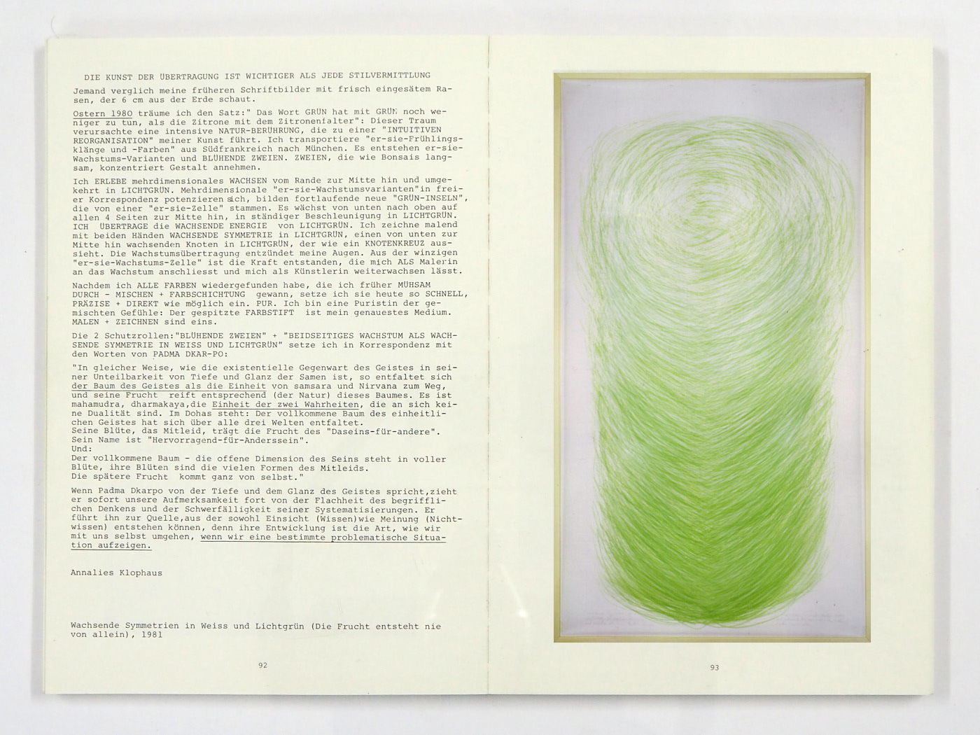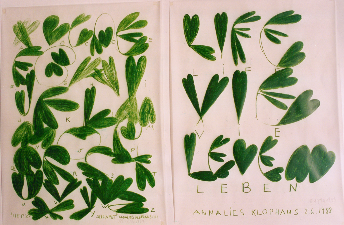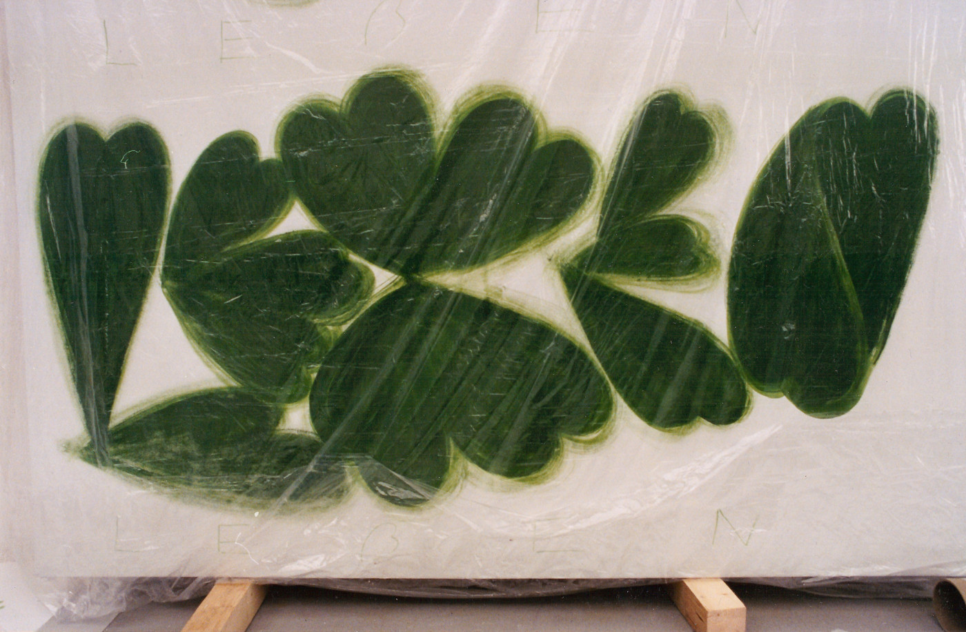 HERZ - WURZELN IN LICHTGRÜN 1982 (1,25m x 1,25m) ANNALIES KLOPHAUS