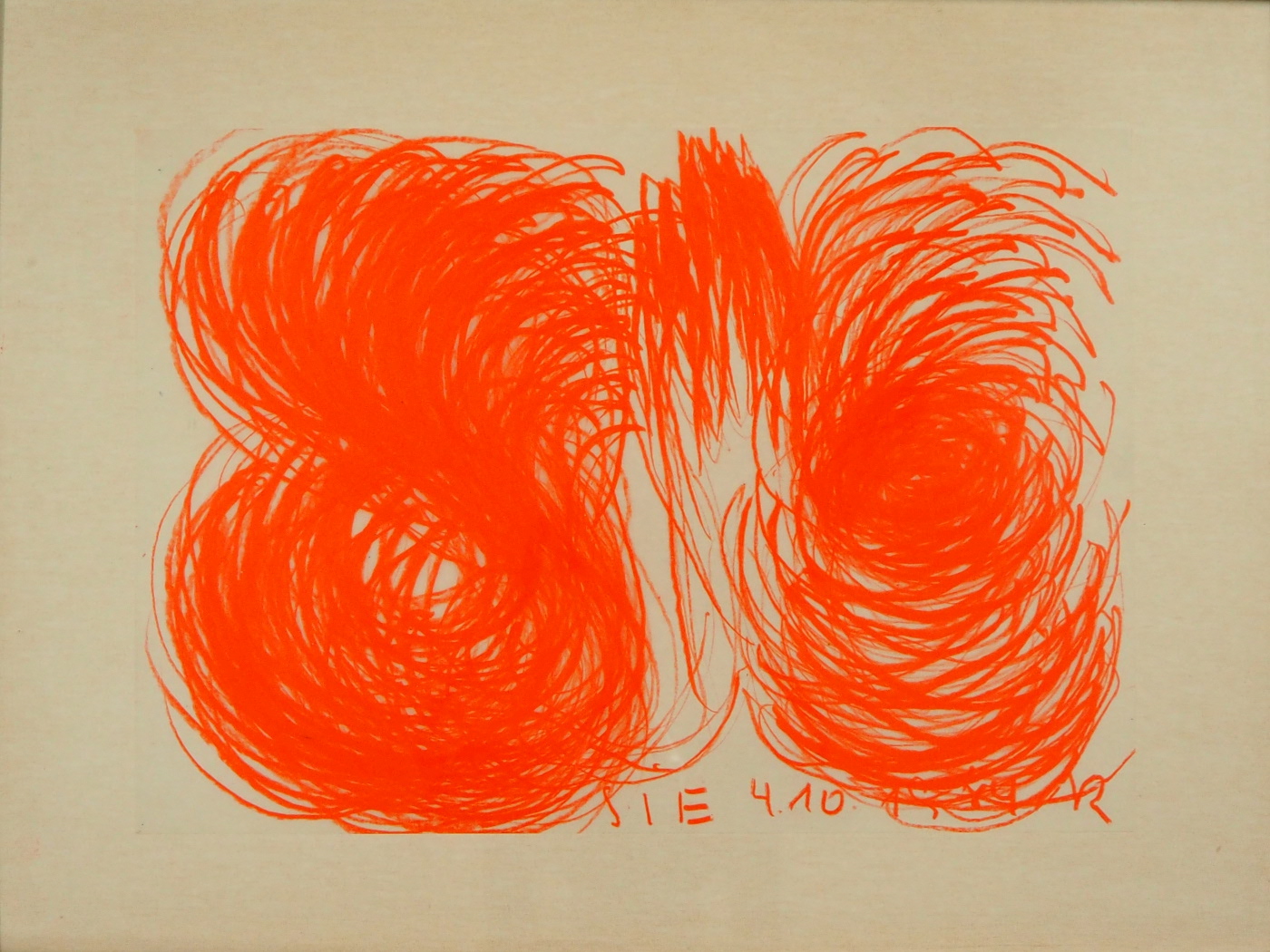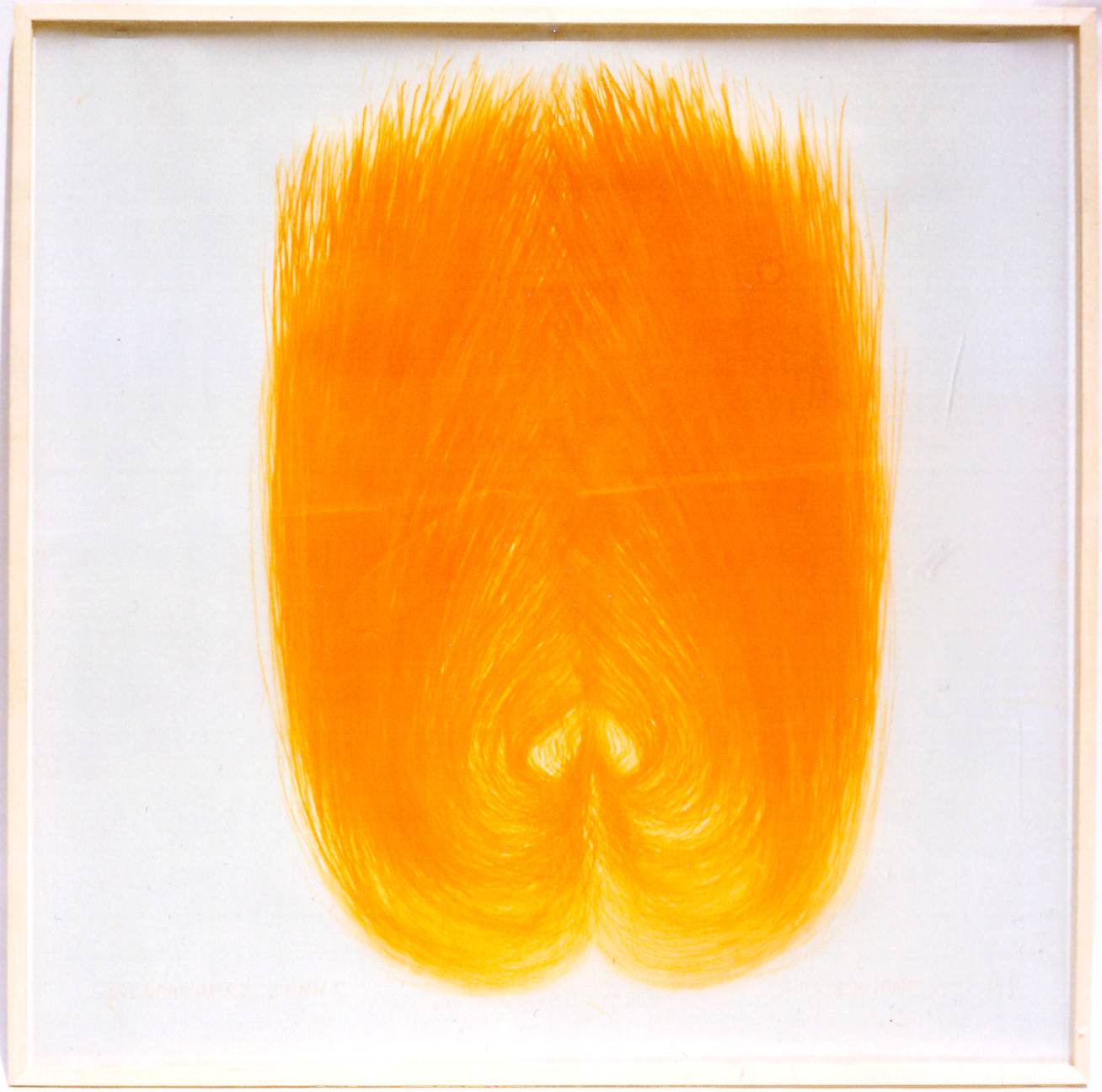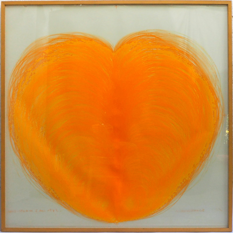 "DAS NEUE HERZ BRENNT AUS DEM KOPF IN LEUCHTORANGE 1982 (1,25m x 1,25m)