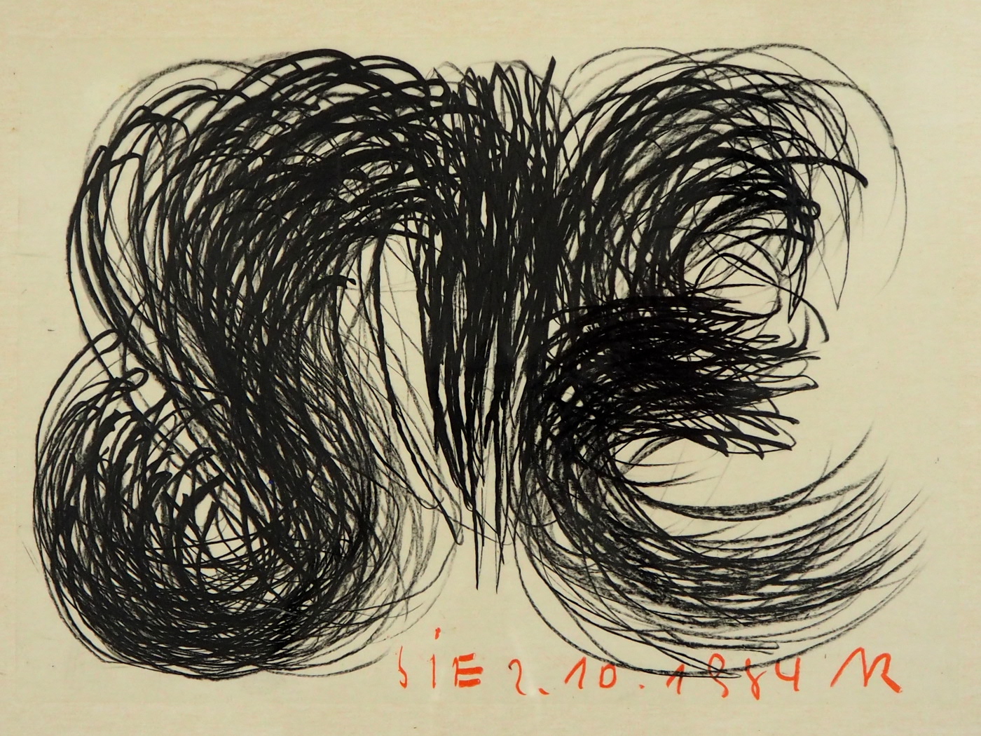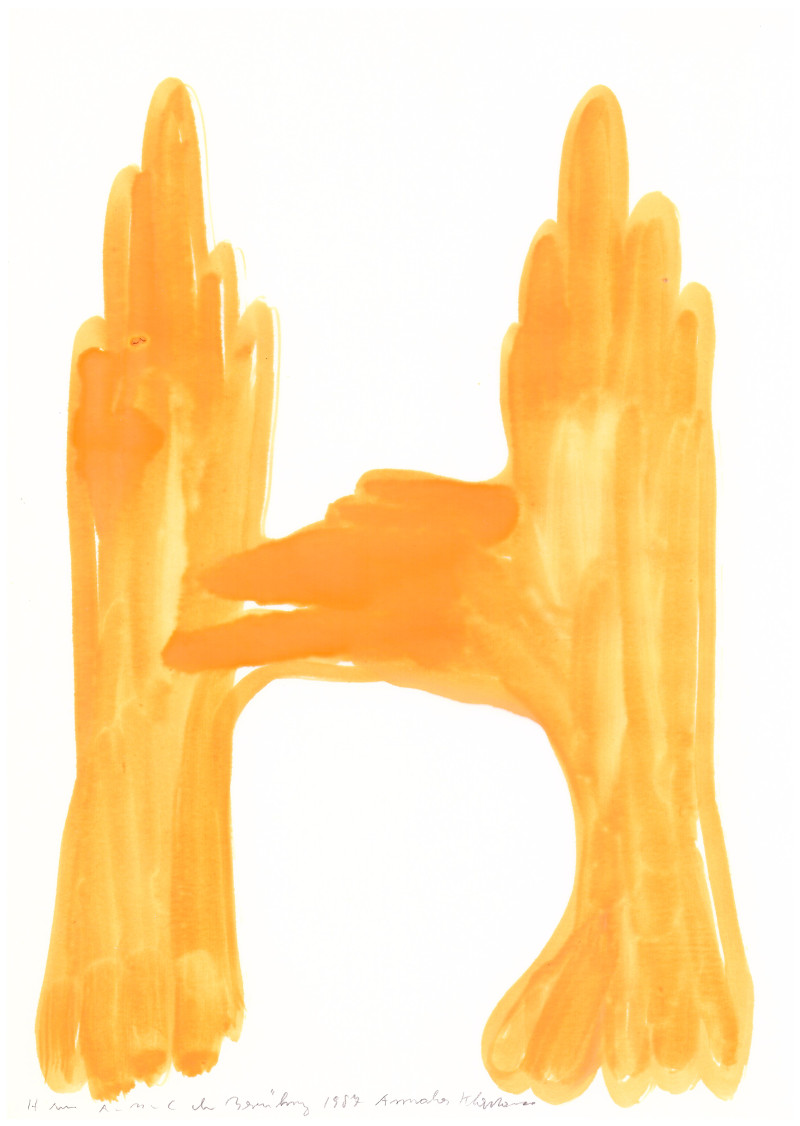DAS NEUE HERZ BRENNT AUS DEM KOPF IN LEUCHTORANGE 1982 (1,25m x 1,25m)
