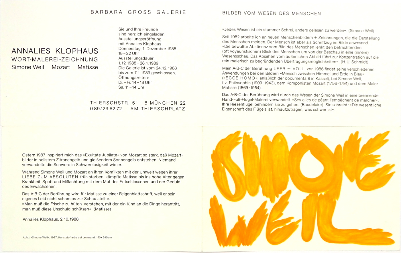 ANNALIES KLOPHAUS Ausstellung "MENSCH - HUMAN BEEING - ETRE HUMAIN - SIE" Galerie Christel Schüppenhauer - 1986